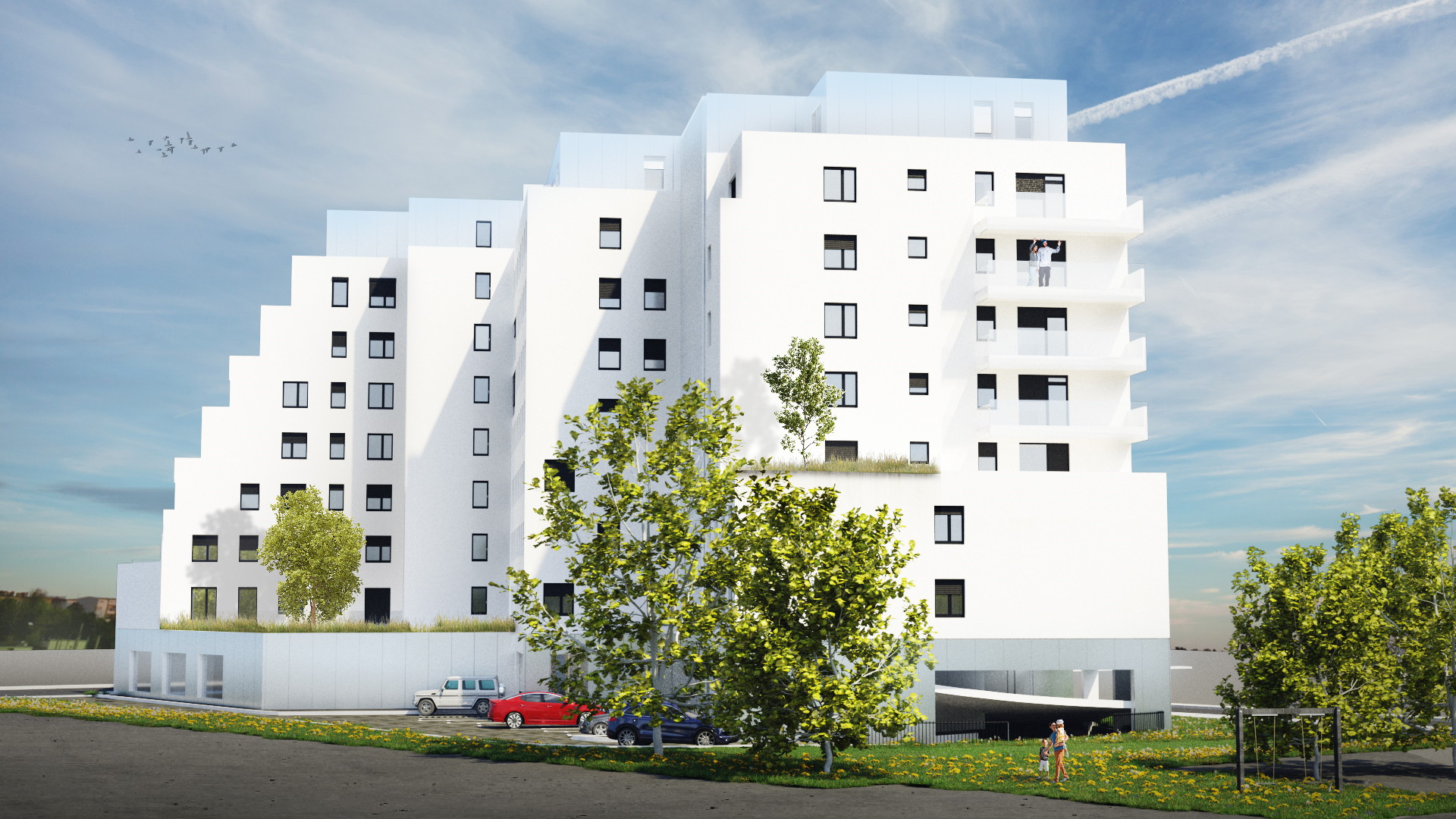 Usljed oblika parcele zgrada i nepovoljnih orijentacija zgrade (lamela sa glavnim orijentacijama stanova sjever-jug) lamela je usitnjena na više tlocrtno zarotiranih volumena te međusobno povezanih u jednu cjelinu, a sa ciljem ostvarenja povoljnije orijentacije stanova. Na taj način razvedena je velika duljina građevine (smjer istok-zapad) te je osigurano bolje prirodno osvjetljenje i ventilacija prostora, te za većinu stanova višestrana orijentacija.